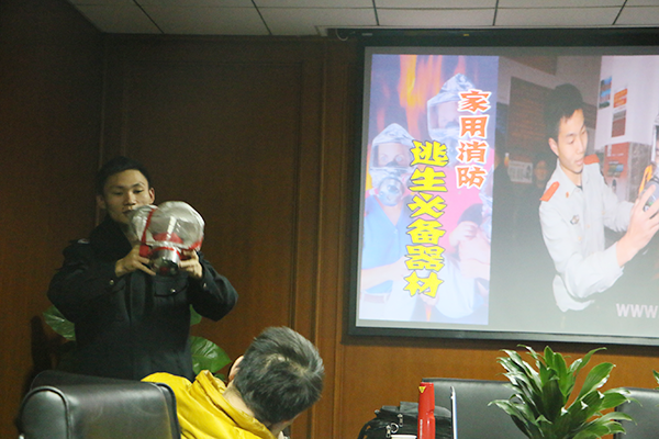 消防員通過播放消防短片及PPT,詳細(xì)講解了滅火、防火、逃生三個(gè)方面的消防知識(shí),并對(duì)消防器材如防毒面具、滅火器等的功能及使用方法進(jìn)行了步驟演示,對(duì)大家提出的各類消防問題也進(jìn)行了細(xì)致的解答。此次消防安全知識(shí)培訓(xùn)讓我們受益匪淺,并進(jìn)一步擰緊了我們思想上的“安全螺絲”,不僅學(xué)習(xí)了各類火災(zāi)的消防知識(shí)、掌握了應(yīng)對(duì)的必備技能,自身應(yīng)對(duì)火災(zāi)的能力還得到實(shí)質(zhì)性提升。