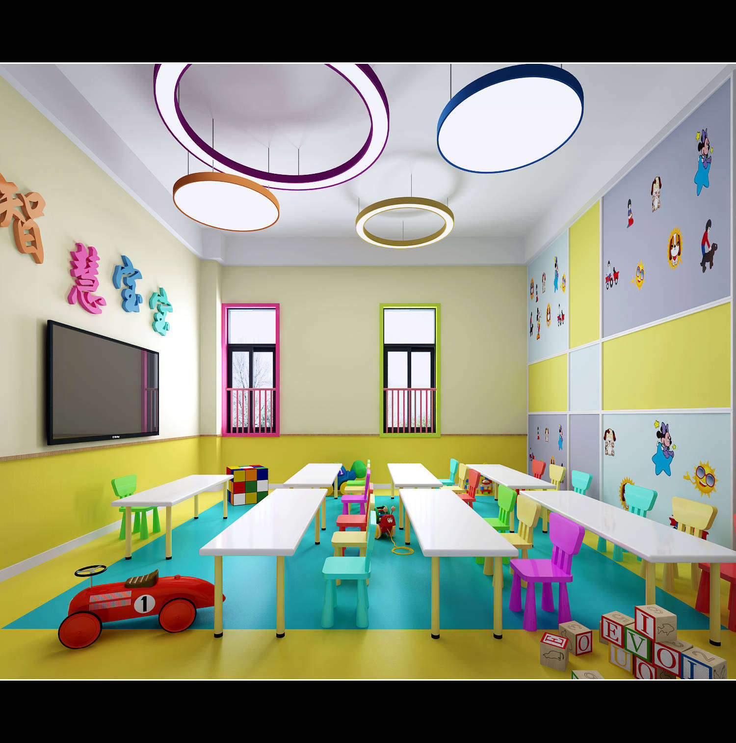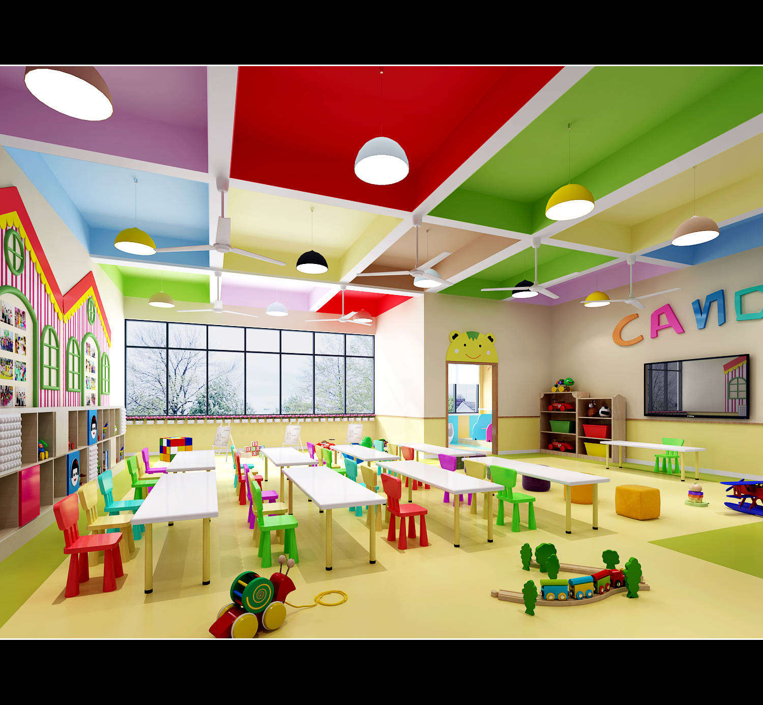 L形建筑與鐵藝欄桿圍合出大面積幼兒活動(dòng)空間,大型幼兒游樂實(shí)施,成為小朋友游戲的天堂。多媒體一體機(jī)、鋼琴、空調(diào)、消毒柜、熱水器等現(xiàn)代化設(shè)備一應(yīng)俱全;音樂室、美術(shù)室、手工室、舞蹈房、繪本館等專用活動(dòng)室使孩子們流連忘返;樓層連環(huán)式的卡通文化設(shè)計(jì),主題區(qū)角讓幼兒園真正成為孩子們生活、游戲、學(xué)習(xí)、創(chuàng)造、健康成長(zhǎng)的快樂天地。