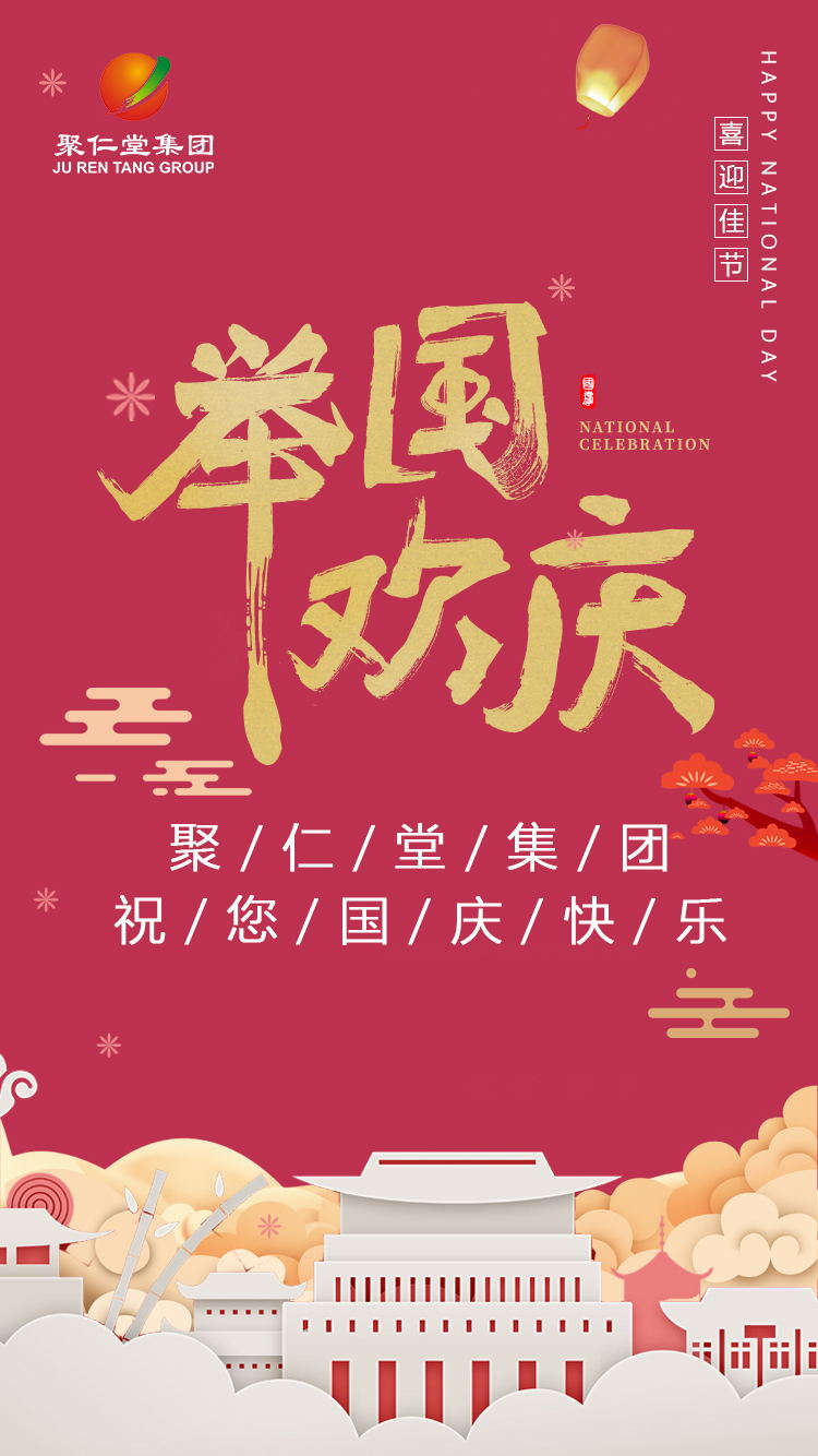 普天同慶賀華誕,神州大地俱歡顏。我們迎來了69歲生日,世界各地的華夏兒女歡騰賀國慶,深深祝福偉大的祖國母親!值此之際,聚仁堂集團向全體員工表示節(jié)日祝福:祝大家國慶快樂,闔家歡樂!特別是節(jié)日期間堅守在工作崗位的員工,你們辛苦了!感謝你們!因為有你們,聚仁堂會有更好的明天!