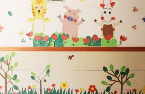 老師們集思廣益,利用各色各類紙、板、盒以及其他可再利用的材料,通過畫、剪、貼、折、編等多種方式,布置出了一幅幅主題墻飾。在幼兒園領(lǐng)導(dǎo)帶領(lǐng)下,大家群策群力,從教室內(nèi)外墻壁、吊飾物、美麗花園、區(qū)角活動等幾個(gè)方面進(jìn)行設(shè)計(jì)裝飾。