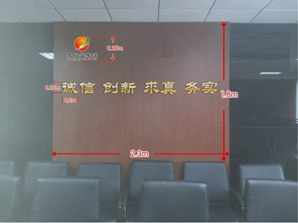 除前臺外,集團(tuán)辦公區(qū)域設(shè)計(jì)主要集中在照片墻、辦公室門牌和會(huì)議室背景墻上。照片墻上的相框錯(cuò)落有序排列著,里面展示的是各位領(lǐng)導(dǎo)蒞臨集團(tuán)及集團(tuán)各下屬企業(yè)、院校視察的照片,充分展現(xiàn)了集團(tuán)輝煌的發(fā)展歷程。各部門辦公室的門牌外形設(shè)計(jì)為長方形,配以藍(lán)色底紋,與藍(lán)色的防撞貼顏色相呼應(yīng),讓人形成統(tǒng)一的視覺感受。順著過道一直往里走,來到了寬敞的會(huì)議室。根據(jù)會(huì)議室背景墻設(shè)計(jì)方案,將在幕墻上裝飾 “誠信 創(chuàng)新 求真 務(wù)實(shí)”8個(gè)水晶大字,提醒大家要時(shí)刻謹(jǐn)記集團(tuán)的經(jīng)營理念,努力實(shí)現(xiàn)集團(tuán)的發(fā)展目標(biāo)。